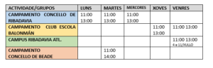 No horario de mañá, asemade do uso libre, acuden á instalación distintos grupos nos seguintes horarios: