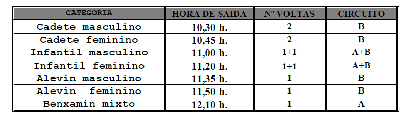As probas darán comenzó ás 10:30 h. ata as 13:00 h. Participando nas categorías Benxamín, Alevín, Infantil e Cadete.