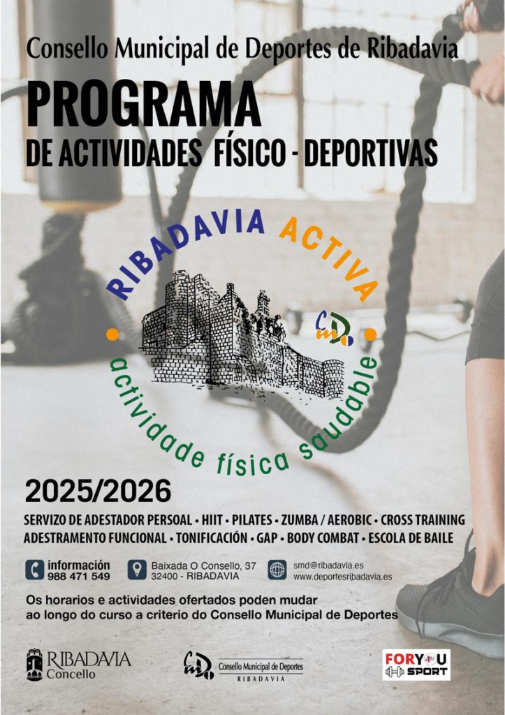 O luns 15 de setembro darán comezo as Actividades Dirixidas incluídas no Programa Municipal de Actividades Fisico-Deportivas 25/26, agás a